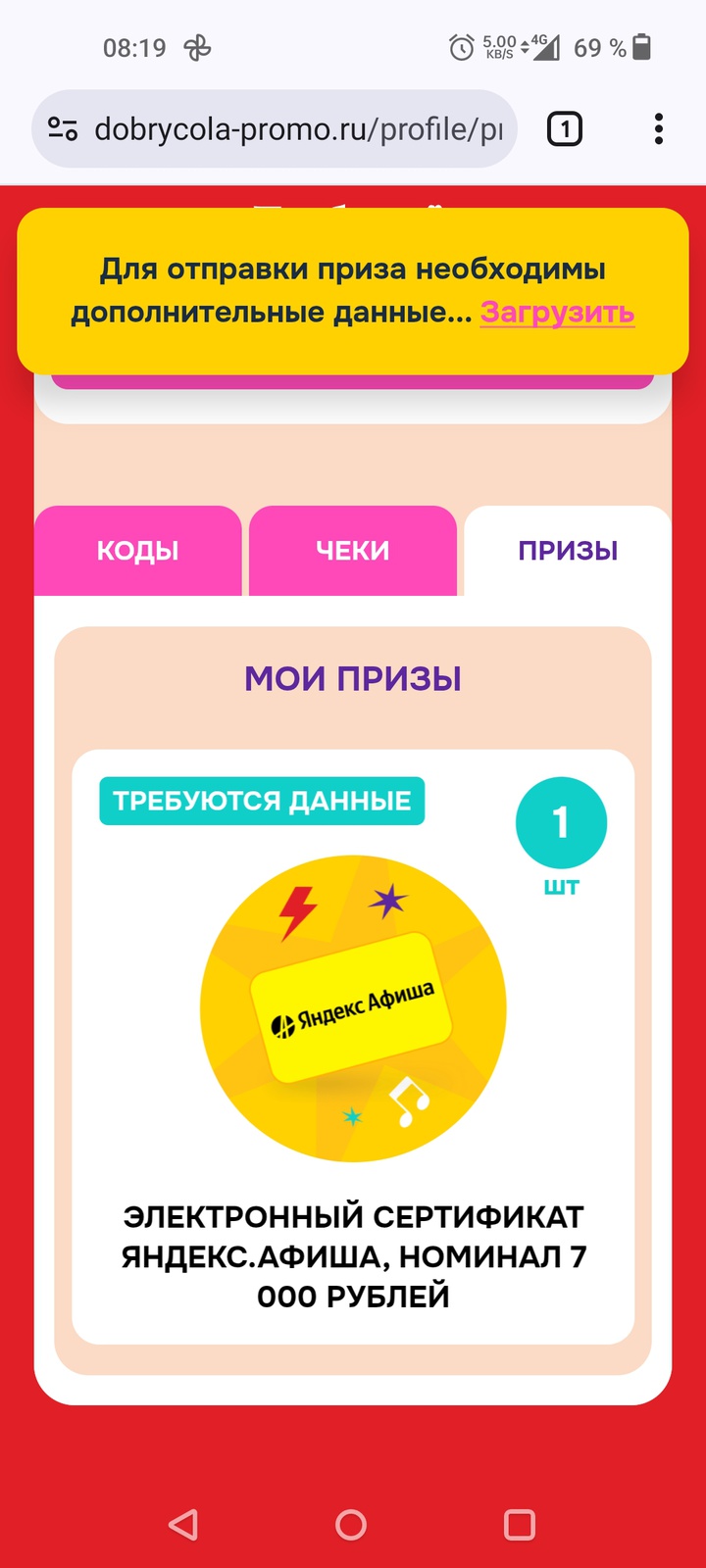 - Электронный сертификат Яндекс.Афиша номиналом 7000 руб.