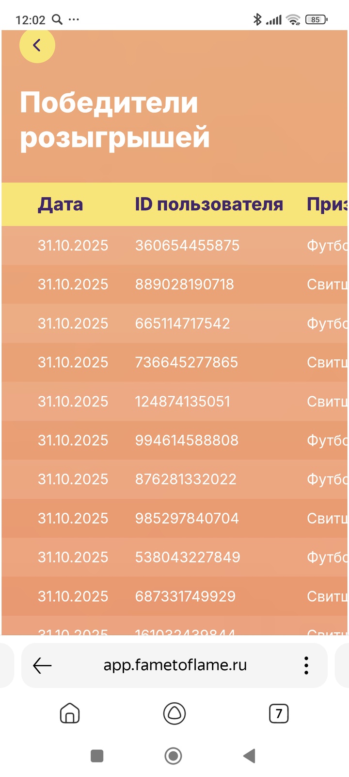 - 5 баллов - Билеты на Гранд-Финал «Fame to Flame» в Москве 9 ноября 2025 года.
