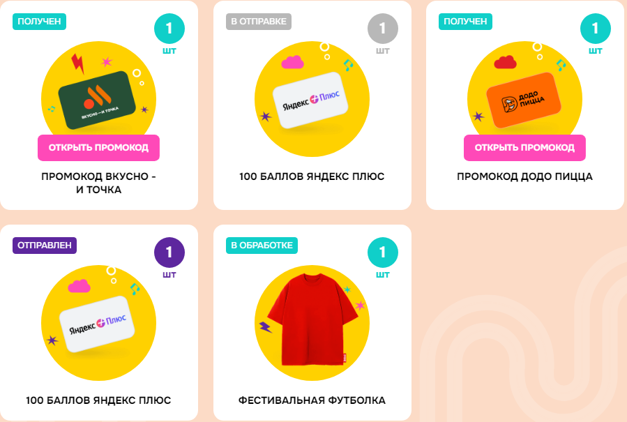 - 20 баллов - Сертификат Яндекс.Афиша, номинал 2 000 руб. - 2500 шт.