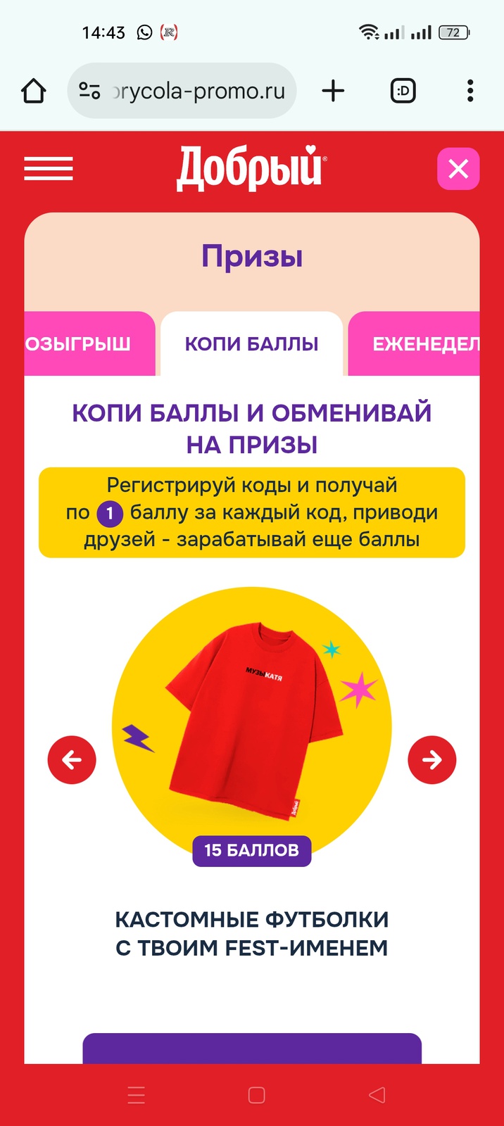 • 15 баллов - Фестивальная футболка красная - 7500 шт.;