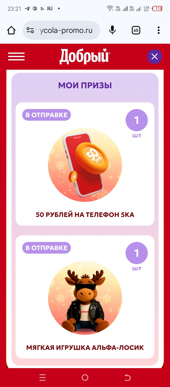 - Загрузите 10 чеков из «Пятёрочки» с продукцией Добрый® и обменяй их на уникальную игрушку лосика.