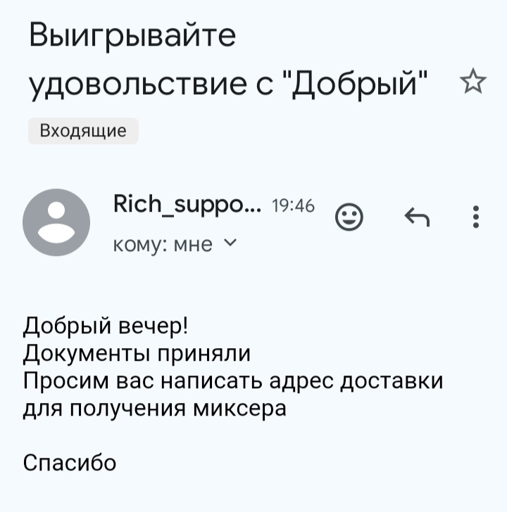 Перепроверьте исходящие и перешлите письма на: rich_support@arkgroup.ru