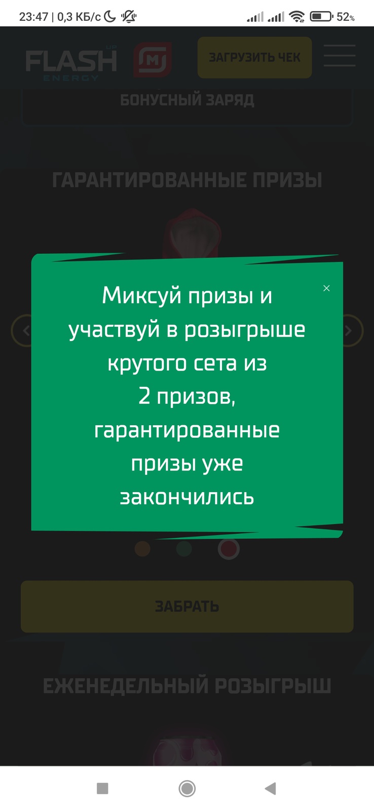 - Еженедельный розыгрыш (участие в розыгрыше за 1 заряд):