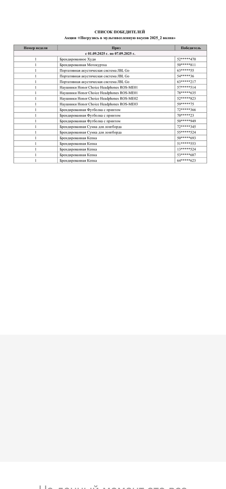 - Период регистрации участниками Акции чеков, содержащих Продукцию в Чат-боте: с 00 часов 01 минуты «01» сентября 2025 года по 23 часа 59 минут «31» октября 2025 года.