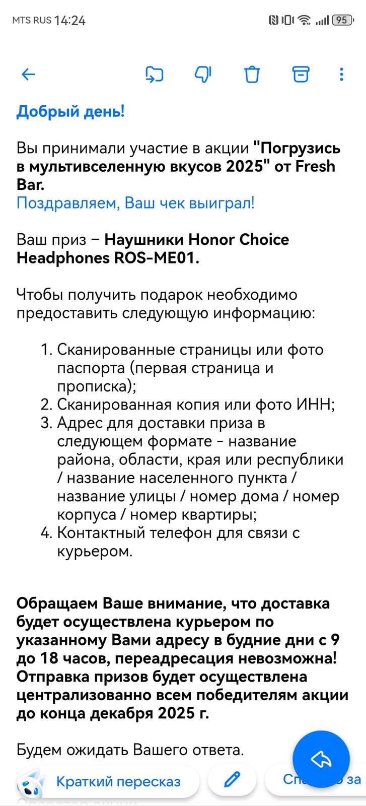 Я на почту им написала, пока не ответили