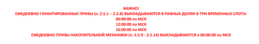 ЕЖЕДНЕВНО ПРИЗЫ НАКОПИТЕЛЬНОЙ МЕХАНИКИ (п. 2.5.9 -2.5.14) ВЫКЛАДЫВАЮТСЯ в 00:00:00 по МСК