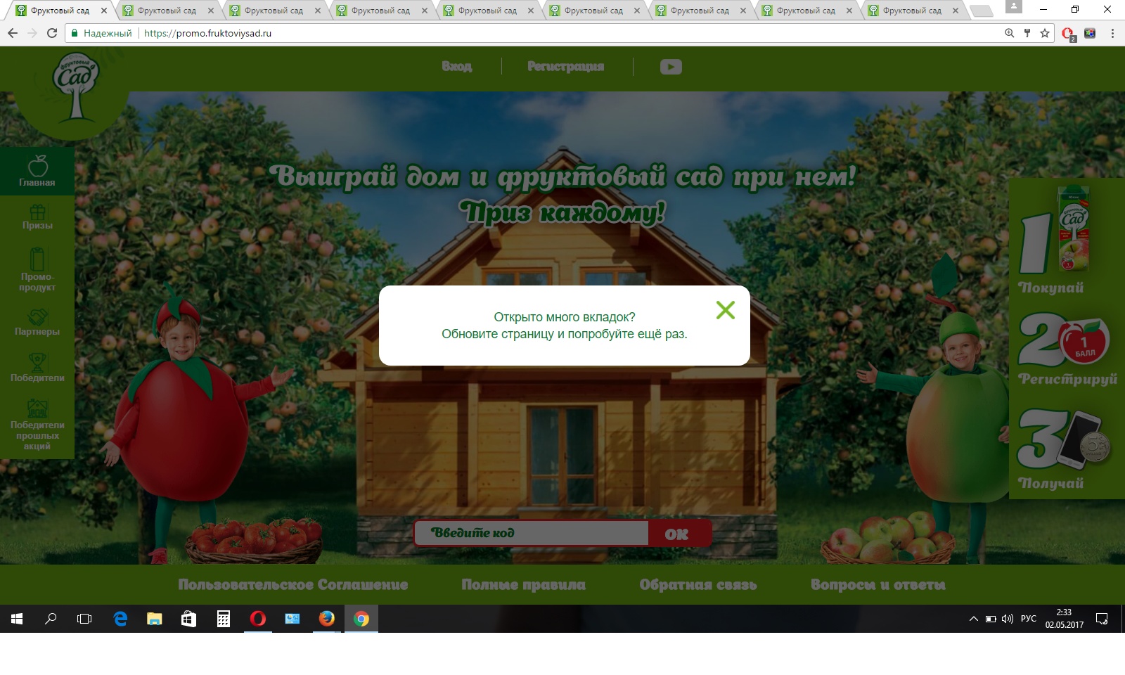 - Покупай компоты и нектары «Фруктовый Сад» в промо-упаковке. Сохраняй стикеры с кодами и чеки;