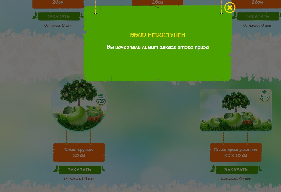 - Покупай соки и нектары "Фруктовый Сад" в промо-упаковке. Сохраняй стикеры с кодами и чеками