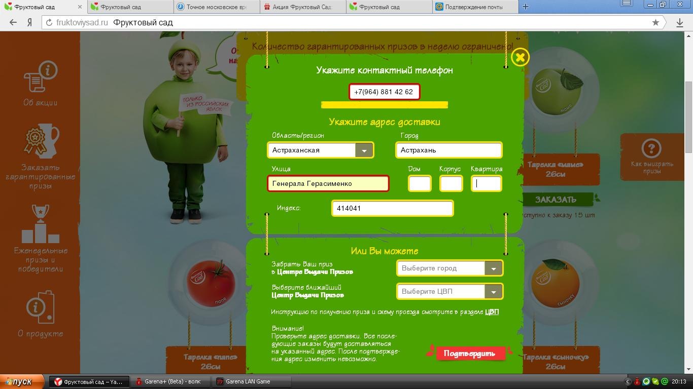 - Регистрируй коды со стикеров на сайте www.fruktoviysad.ru или через смс на 4441 и собирай коллекцию гарантированных призов!