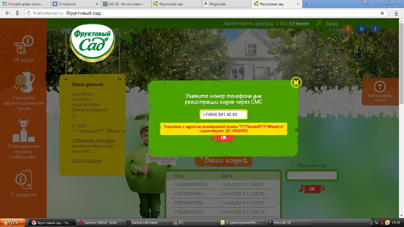 - Покупай соки и нектары "Фруктовый Сад" в промо-упаковке. Сохраняй стикеры с кодами и чеками