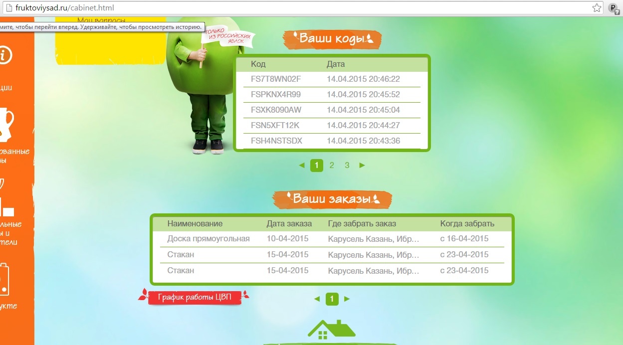 - Регистрируй коды со стикеров на сайте www.fruktoviysad.ru или через смс на 4441 и собирай коллекцию гарантированных призов!