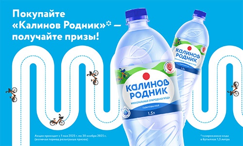 - С 1 мая 2025 г. и по 31 октября 2025 г. включительно купите газированную воду «Калинов Родник» 1,5 л в акционной упаковке и найдите под крышкой промокод. Активируйте промокод в приложении «Велобайк» до 31 октября 2025 г.