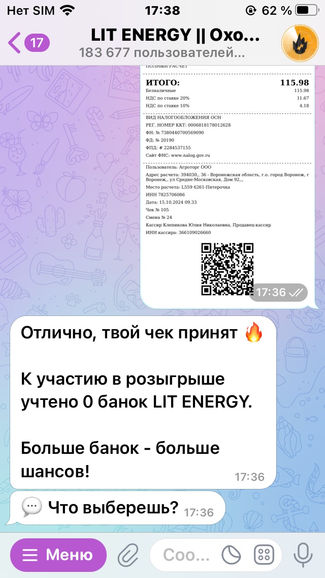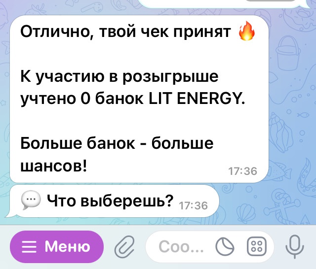 - Регистрируй чеки на сайте или в Telegram-боте - https://t.me/litenergy_x5_bot;