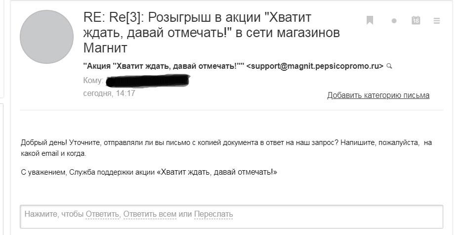 05.12. был запрос. Добрый день, Вы являетесь Претендентом на получение призов в акции «Хватит ждать, давай отмечать!» в сети магазинов «Магнит». Призов даже, а не приза. И пока тишина.