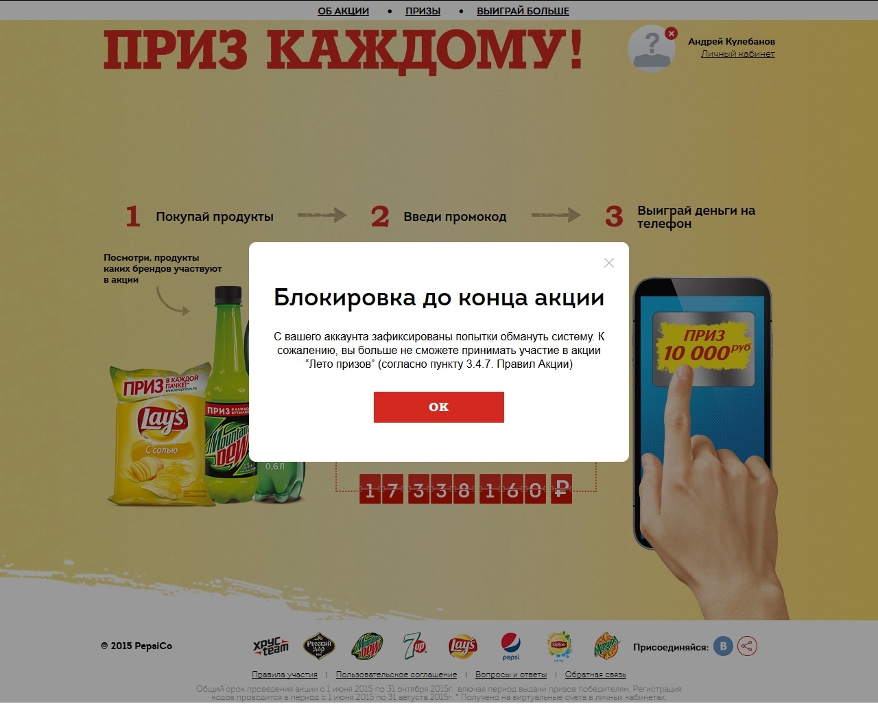 C 1 июня 2015 года участвуйте в акции от PepsiCo! Ищите коды под крышками напитков Pepsi, 7up, Mirinda, Mountain Dew, кваса Русский дар, внутри пачек чипсов Lay's, сухариков Хрусteam, регистрируй коды на сайте акции и выигрывай призы!