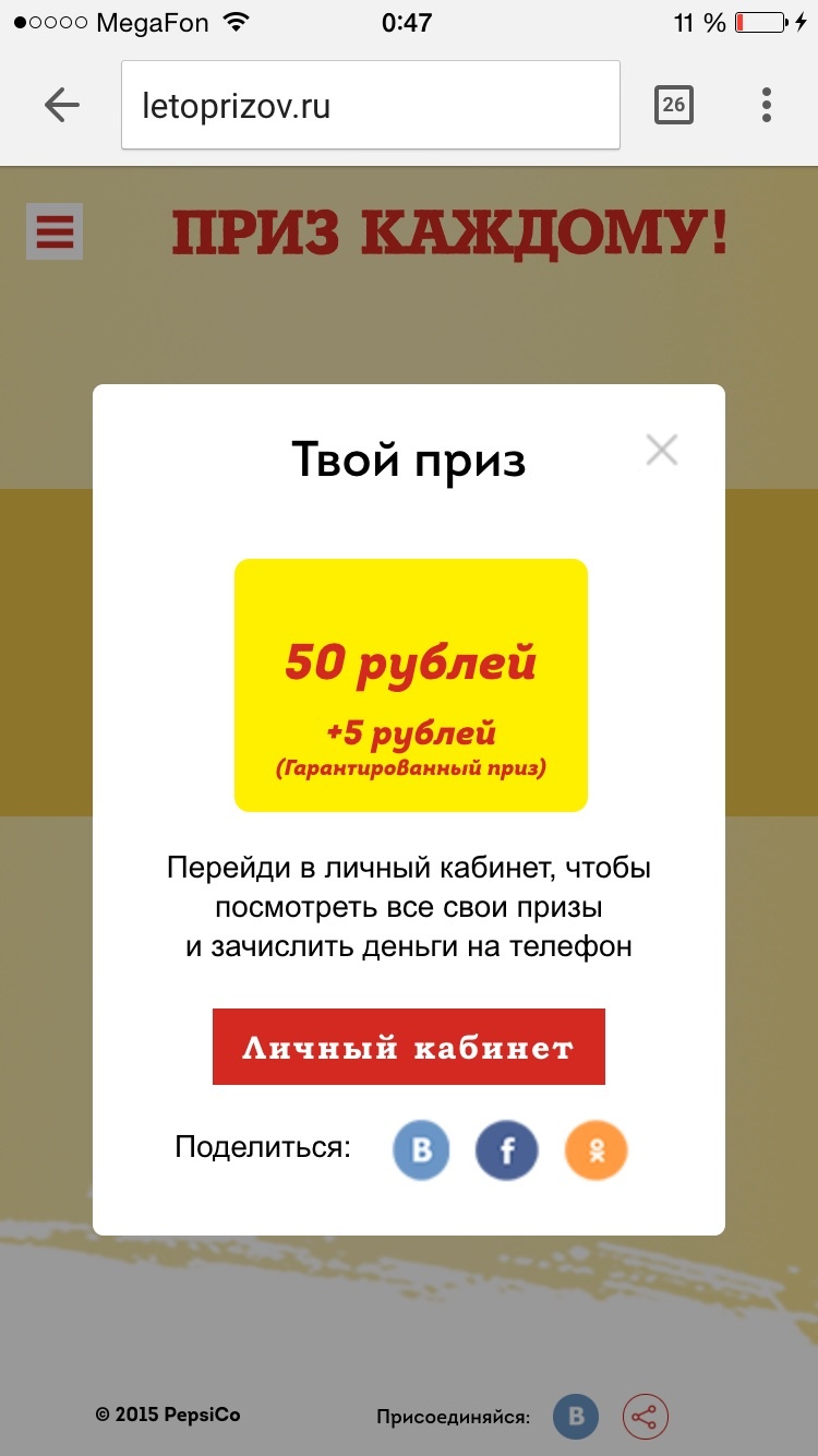 C 1 июня 2015 года участвуйте в акции от PepsiCo! Ищите коды под крышками напитков Pepsi, 7up, Mirinda, Mountain Dew, кваса Русский дар, внутри пачек чипсов Lay's, сухариков Хрусteam, регистрируй коды на сайте акции и выигрывай призы!