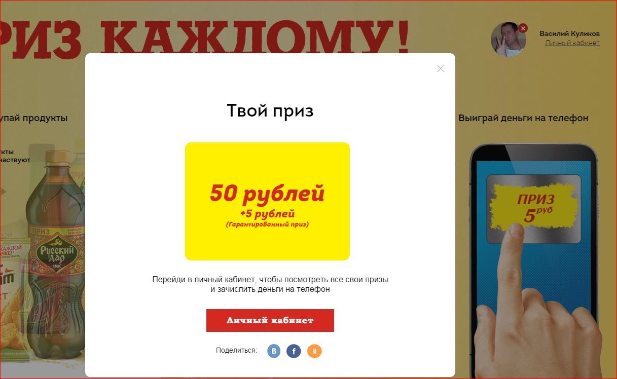 - Гарантированный приз - 5 руб. на счет мобильного телефона за каждый зарегистрированный код;