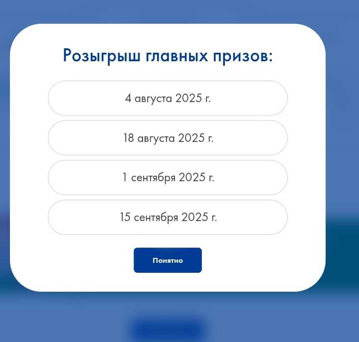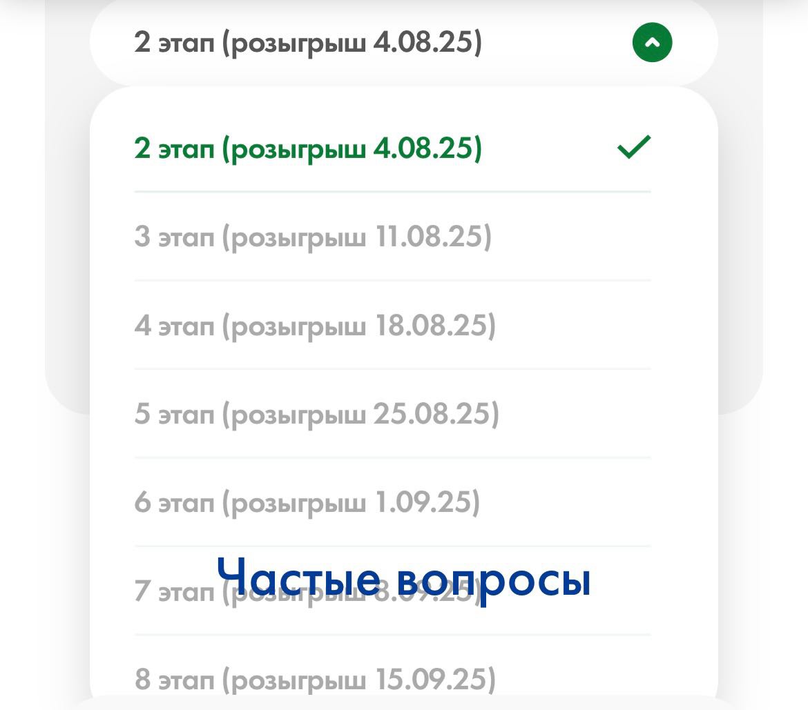 - Общий срок проведения акции: с «15» июля 2025 года (00 часов 00 минут 01 секунд по Московскому времени) по «30» ноября 2025 (23 часа 59 минут 59 секунд по Московскому времени);