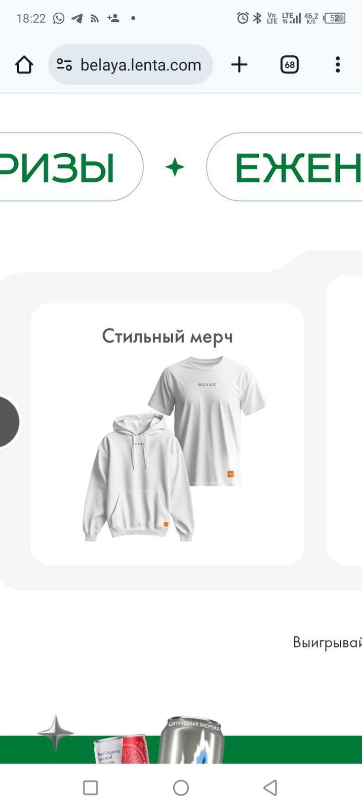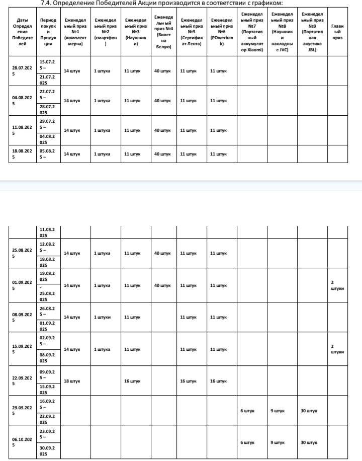 - Сертификат в магазин «Лента» номиналом 4 000 руб. - 11 шт. в неделю. Общее количество – 104 шт.;