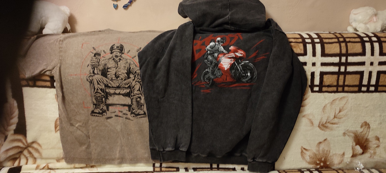 Худи подошло 17 летнему сыну не мелкой комплекции, футболку себе оставила - она мне оверсайз, удобная)