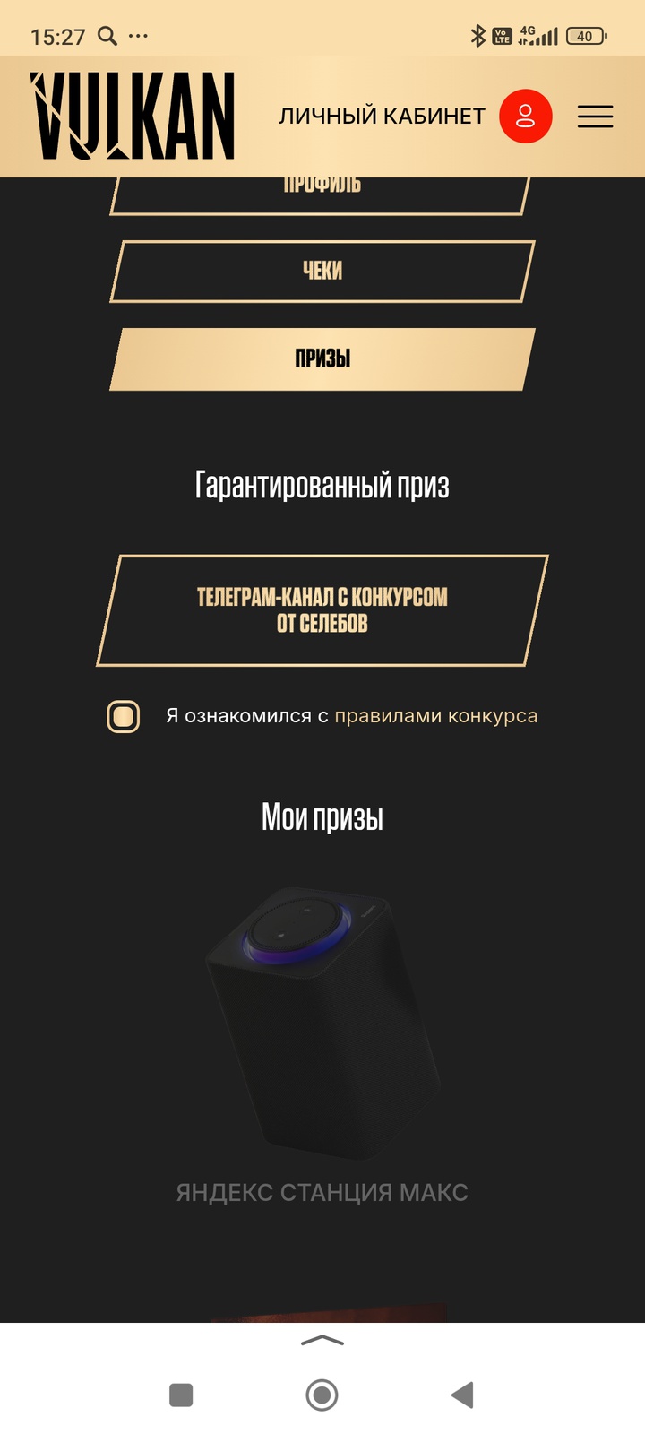 Ссылка в кабинете в разделе "Призы" есть, но у меня она не активна, скорее всего из-за отсутствия загруженных чеков.