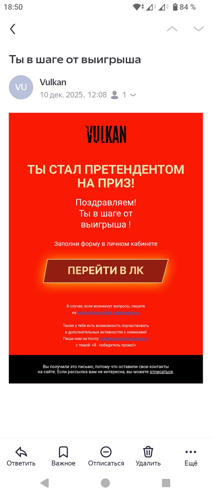 Потом приходит письмо о том что выиграл, а также появляешься на сайте в победителях и в ЛК отражается приз. Потом у меня запрашивали ИНН и паспорт, потом слали ещё одно письмо заполнить получение приза на сайте и уже на сайте закрепить паспорт, ИНН и этот акт. На момент когда меня поздравляли - не было формы закрепа этих документов на сайте, теперь они есть, поэтому скорее всего в письме уже не будут запрашивать паспорт и ИНН, а сразу нужно будет заполнить все на сайте после того как объявят