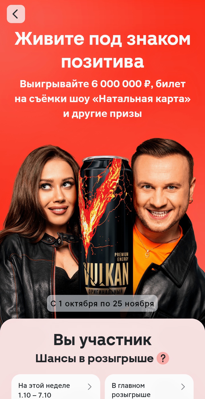 - Нажмите кнопку «Участвовать» в приложении Магнит, чтобы зарегистрироваться в розыгрыше;