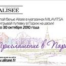 С 4 по 31 октября 2010 г. при покупке белья «Alisee» на сумму от 3000 рублей каждому покупателю в российских магазинах Milavitsa предоставляется возможность выиграть одну из 5-ти путевок в Париж на двоих на Новый год.