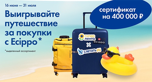 Покупайте товары за фишки из коллекции Ecippo в магазинах «Гипер Лента», выигрывайте 400 000 рублей на поездку мечты!