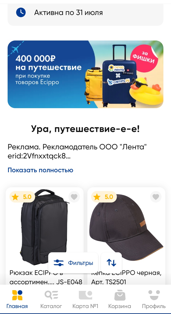 - Покупайте товары за фишки из коллекции Ecippo в магазинах «Гипер Лента» и с доставкой;