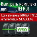 Выиграть комплект шин — легко! Если это шины NOKIAN TYRES, а ты читаешь MAXIM! Майский MAXIM принесет в твои айпэд и айфон секс, бокс и шины! Полный комплект!