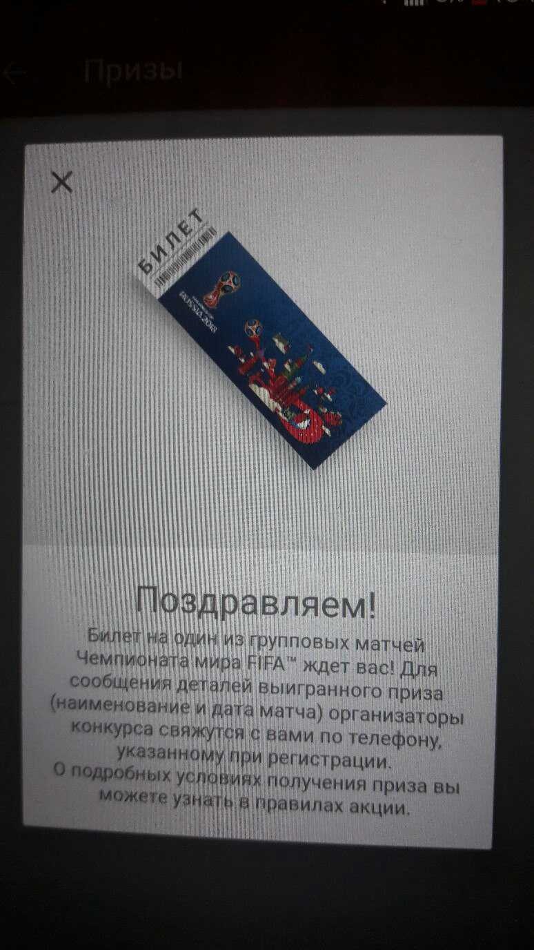 - Билеты на групповой матч Чемпионата мира по футболу FIFA 2018;