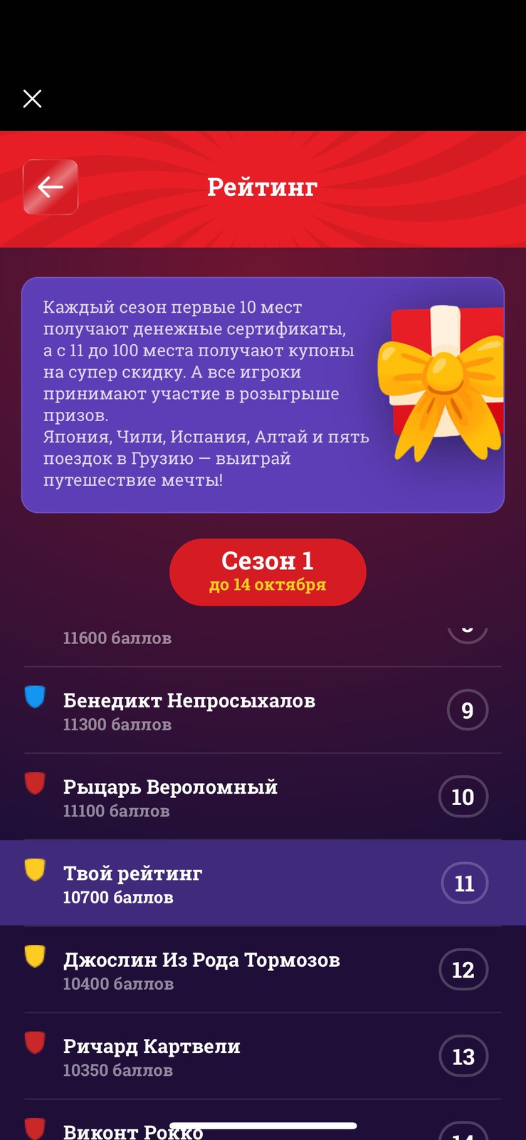 - Еженедельно ТОП-100 игроков, набравших наибольшее количество баллов, выигрывают призы.
