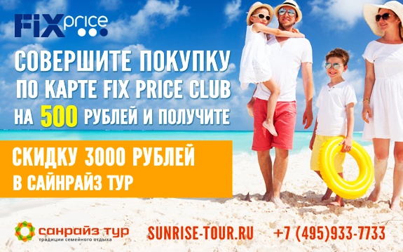 Подробнее о том, как получить скидку читайте на сайте www.sunrise-tour.ru/fix-price или уточняйте по телефону горячей линии 8 (495) 933-77-33!