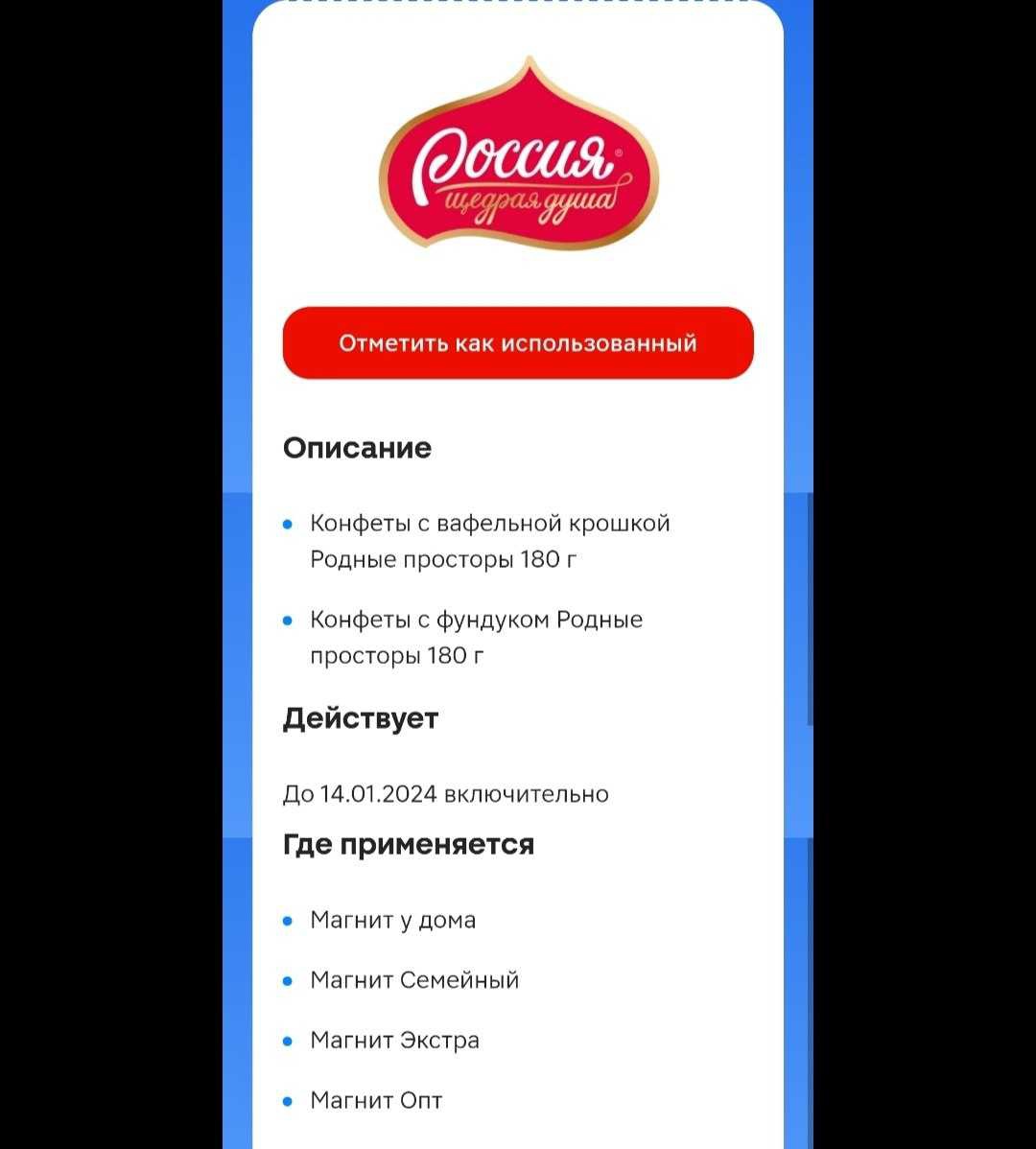 - Электронные купоны Магнит Доставка;