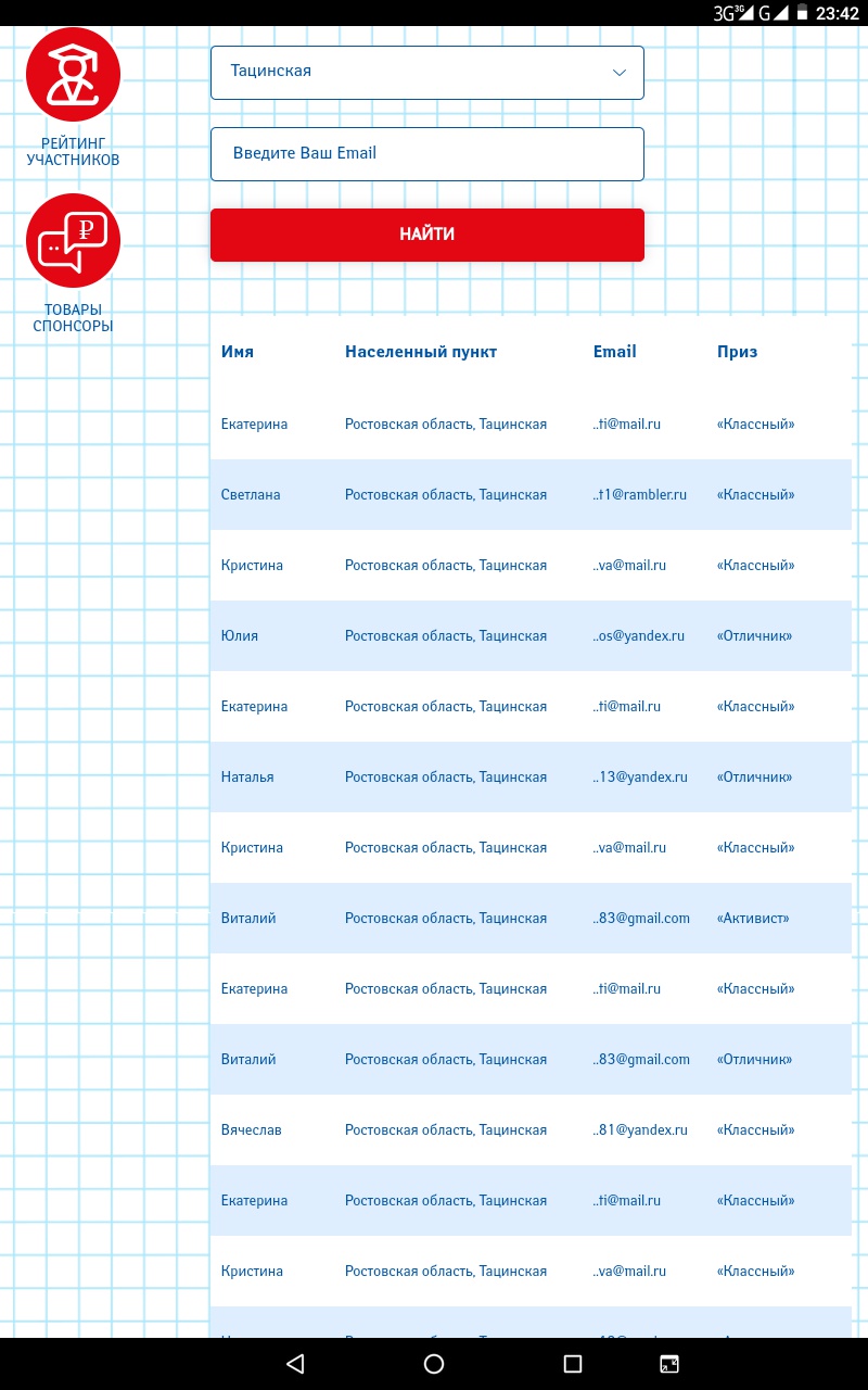 Народ, я сегодня обнаружила интересную закономерность. Если включаю фильтр по своему населенному пункту, то в победителях раз по 20 одни и те же несколько человек в один день. Совпадает имя и адрес почты. Наверное, это хорошо видно у тех, кто живёт в маленьких населенных пунктах.
