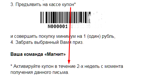 ;Активируйте купон в течение 2-х недель с момента получения данного письма