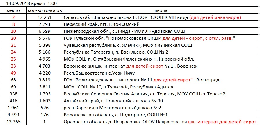 Прошу Вас обратить внимание, на школы интернаты для детей-сирот , которые еще не вошли в топ 67