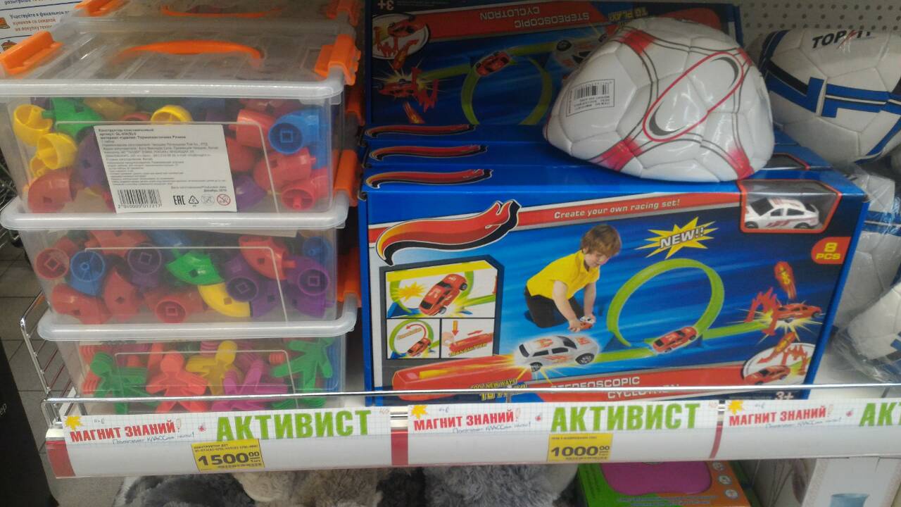 Судя по фото в комментариях к активисту относятся мячи и гоночный трек для машинок...