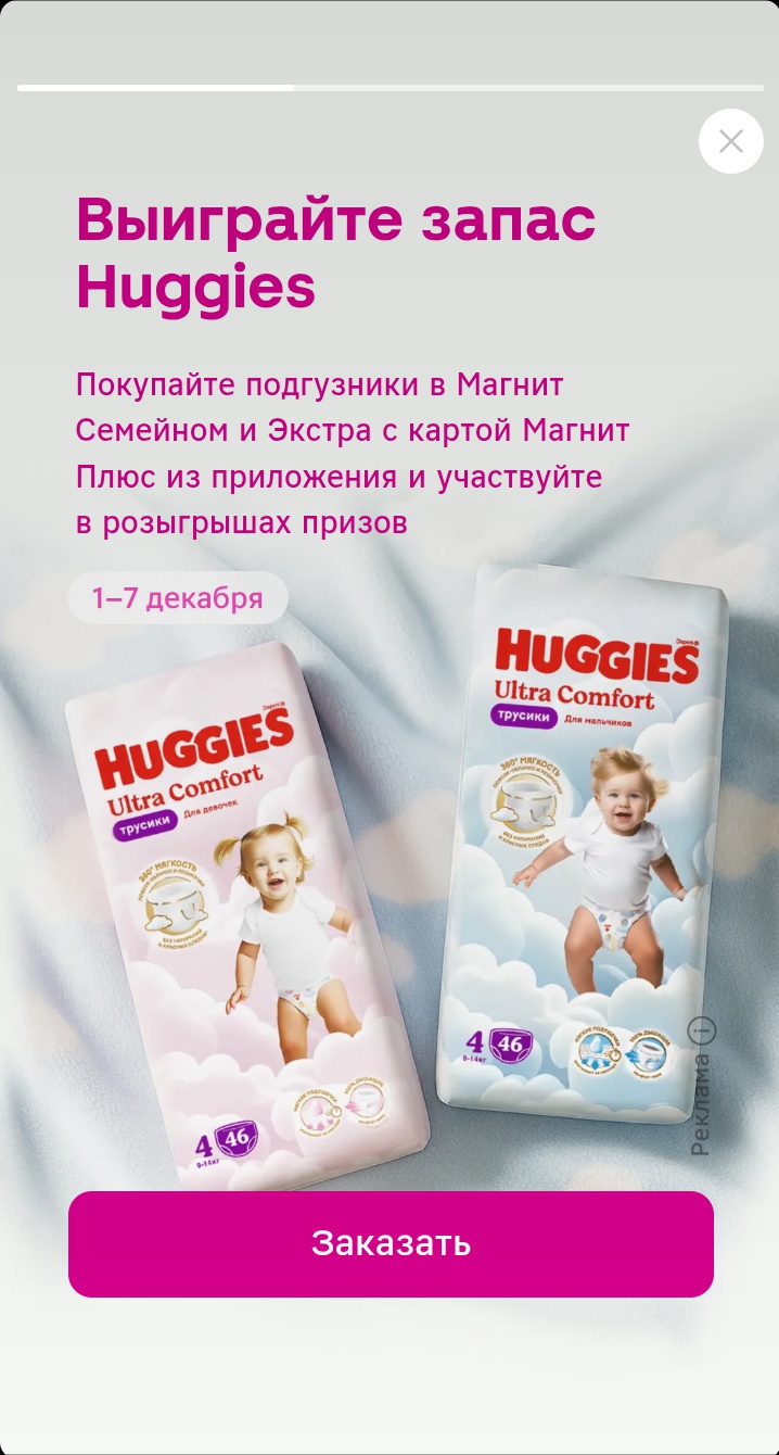 - Акция проводится на территории Российской Федерации в магазинах следующих форматов: «<Магнит у дома», «Магнит Семейный», «<Магнит Экстра», «Магнит Опт», «<Магнит Косметик», «Магнит Аптека»;