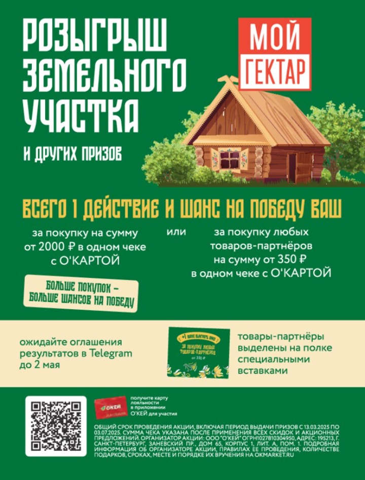 Участвуйте в акции в магазинах «Окей», получите возможность выиграть сертификат на покупку участка или сертификат на отдых в глэмпинге.