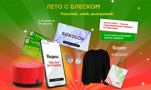 - Сертификат «SOKOLOV» на сумму 100 000 руб., которым можно оплатить 99,9% покупки - 1 шт.;