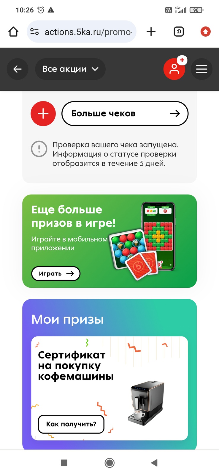 - Получите приз за прохождение каждого этапа развития «Пятерочки».