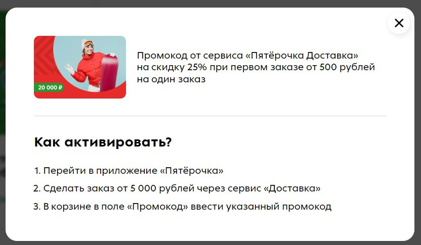 - Промокод Доставка на 3 000 рублей - 150 шт.;