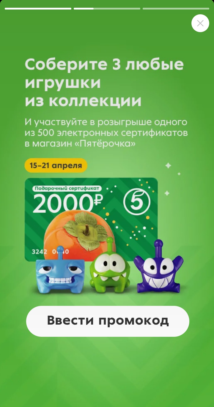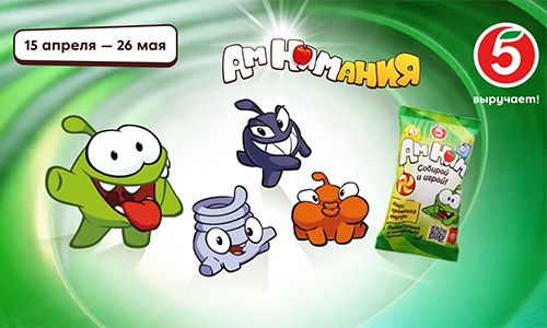 Примите участие в промо-коллаборации Ам Ням и «Пятерочка»! Покупайте товары от 600 рублей в магазинах «Пятерочке» (а также товары-партнеры), получайте пакетики с игрушками Ам Ням в "АмНямании". Ищите промокоды внутри упаковки, регистрируйте и получайте призы! Соберите всю коллекцию!