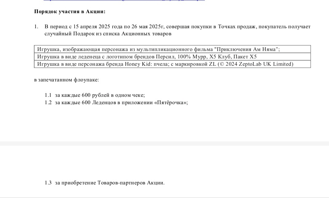 - Срок совершения покупок для участия в акции: с 15 апреля 2025 года по 26 мая 2025г.