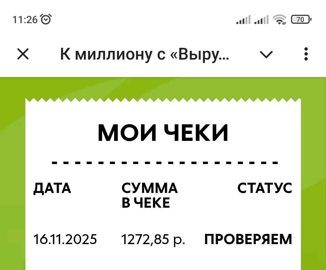 - Загружайте чеки, в которых есть хотя бы один продукт «Выручай». Принимаются чеки из офлайн-магазина и из доставки;