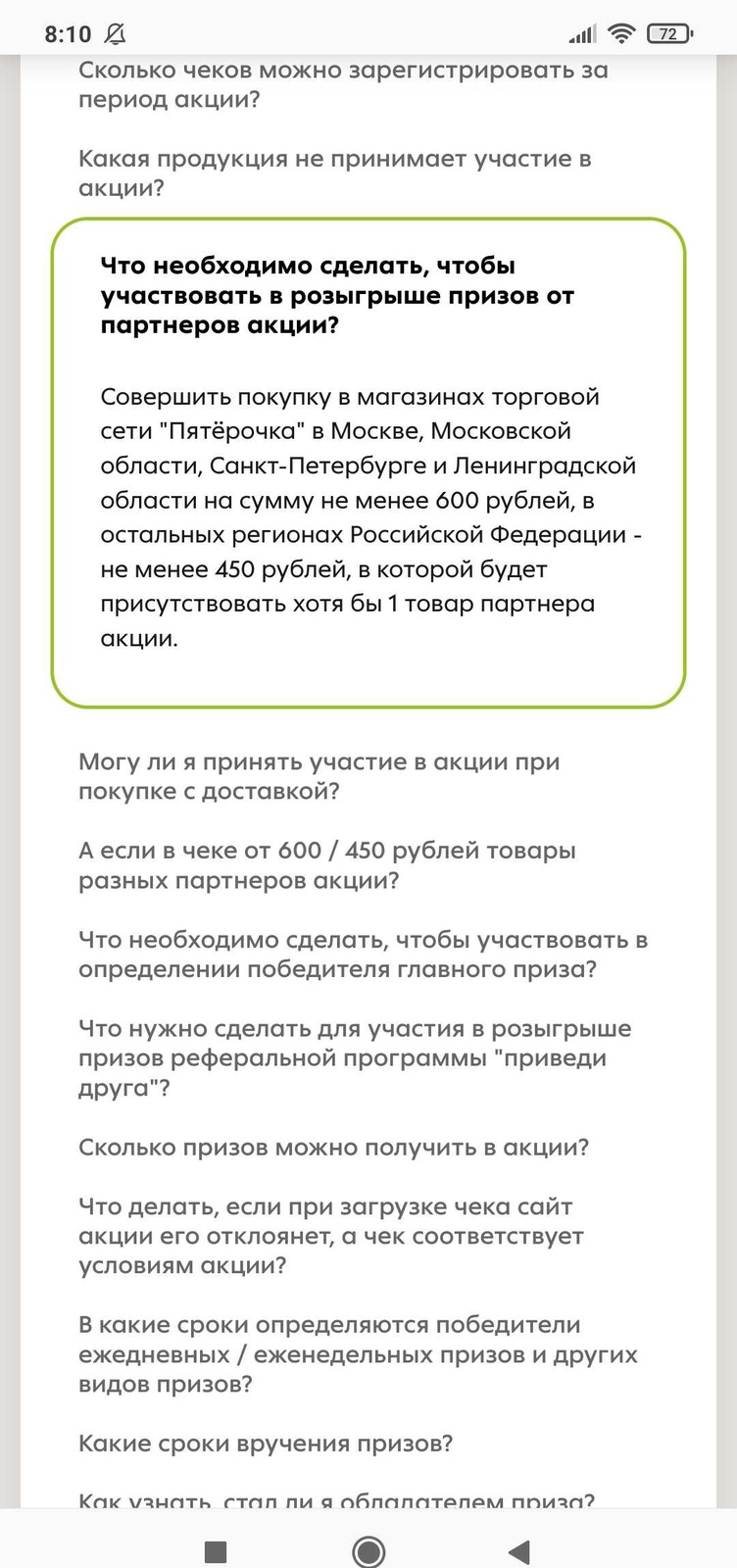 - При наличии в чеке товаров разных партнеров вы участвуете в розыгрыше нескольких призов.