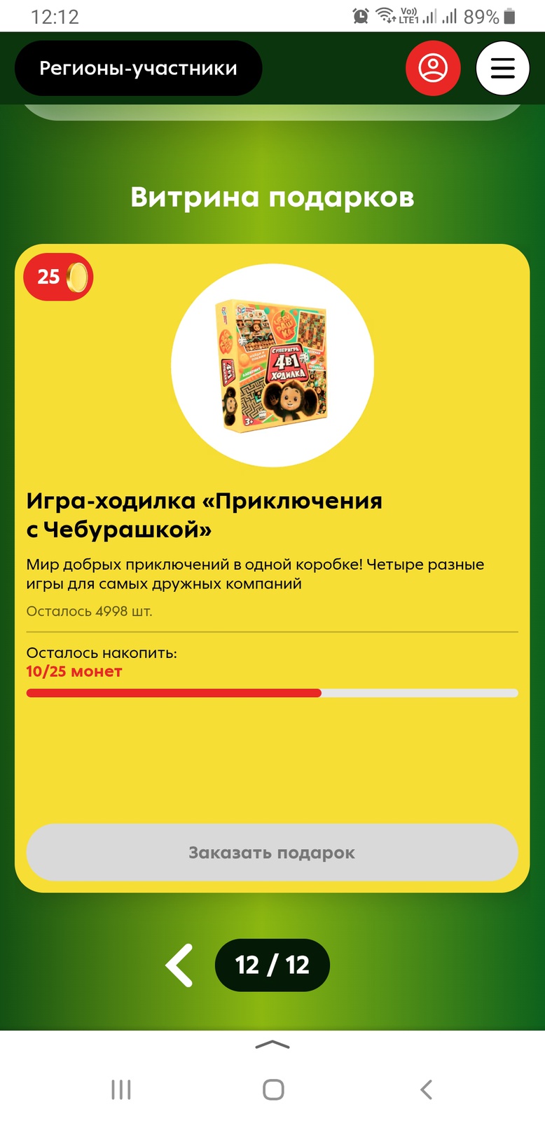 - Настольная игра «Чебурашка» - 50 монет;