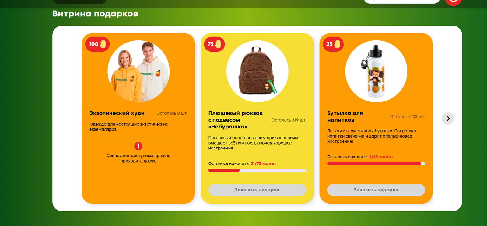 - Мягкая игрушка «Чебурашка» - 50 монет;